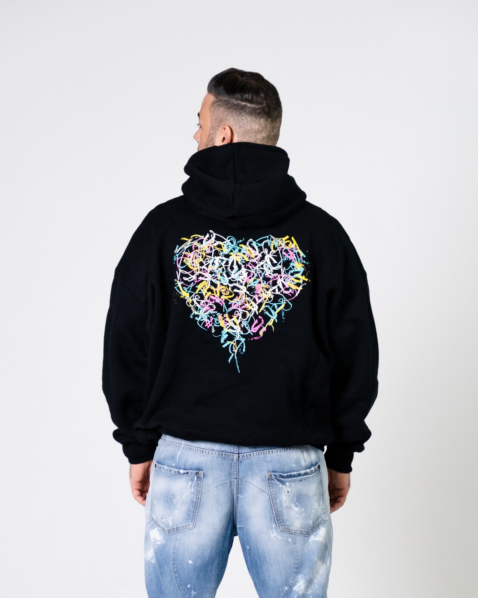 »Lia Heart« ist ein lebendiges Design auf unserem schwarzen Oversized-Hoodie. Einzigartig, bequem und ein Hoodie, in dem von jedem aus unserer Familie etwas steckt.